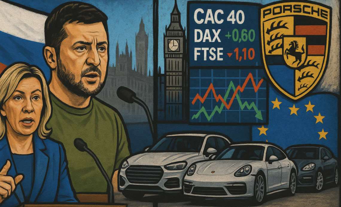 European and global markets navigated a mix of geopolitical tensions and corporate earnings on Friday, with Russia promising retaliatory measures against new EU sanctions, Ukrainian President Volodymyr Zelenskyy calling for enhanced strike capabilities, and major companies reporting earnings updates.